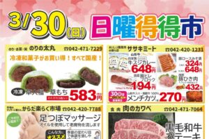 特売情報 ★★日曜得得市★★ 3/30(日) 朝8時open♪ ※一部店舗は休業となります