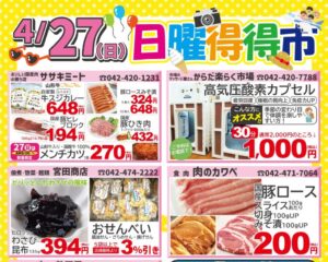 特売情報 ★★日曜得得市★★ 4/27(日) 朝8時open♪ ※一部店舗は休業となります