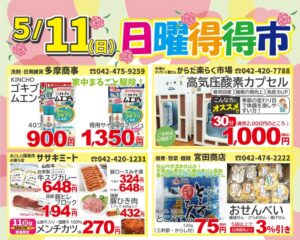 特売情報 ★★日曜得得市★★ 5/11(日) 朝8時open♪ ※一部店舗は休業となります
