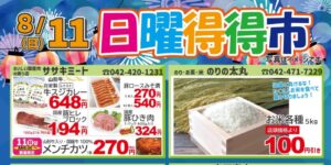 特売情報 ★★日曜得得市★★ 8/11(日) 朝8時open♪ ※一部店舗は休業となります