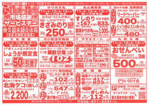 6/6(木)~8(土)は市場感謝サービスデーです。 お得な3日間をお見逃しなく♪