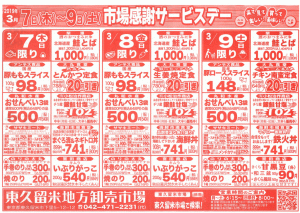 特売情報!3月7日(木)から9(土)まで市場感謝サービスデーです