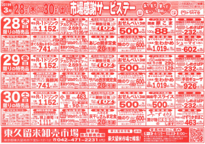 ☆特売情報☆3/28(木)~30(土)は市場感謝サービスデーです