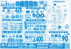 3月10日は8時より日曜得得市です ※一部店舗の営業です