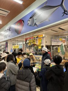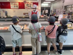 先生のお話をしっかり聞き、2グループに分かれて見学しました。 冷凍マグロの解体を見た際は「おぉー!」と歓声あげていました。 お肉屋さんや鮮魚店、おにぎり屋さんや干物屋さんでもたくさん挙手して質問しており、臨時で屋外に出店 […]