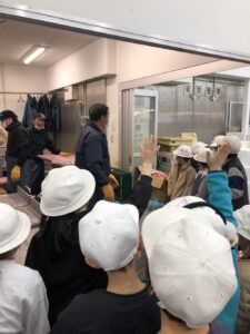石神小学校の3年生の皆さまが見学に来てくれました! 新型コロナの影響で大型バスに乗って見学に行くこと自体ほぼ初めてだそうで、皆さん楽しそうでした。お店の従業員さんにも話しかけて質問したりしていました。