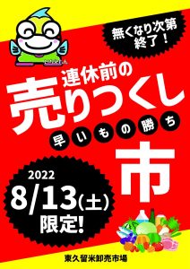 いよいよ明日★2022年8月13日(土)は連休前の❝売りつくし市❞を開催‼