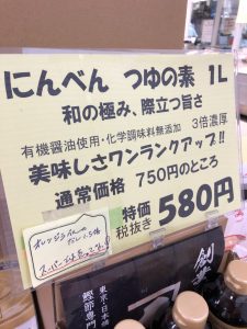 業務用食材の三基フーズより にんべん つゆの素 和の極み 際立つ旨さ 1L(3倍濃厚) がおすすめです! 通常価格 750円のところ、特価580円(税抜き) ●本醸造有機醤油使用 ●化学調味料無添加 ●3倍濃厚 ●スーパ […]