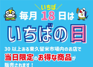 // 📢毎月18日は『いちばの日』 \\ 来たる9/18(木)は「いちばの日」!! 東久留米市場内のお店で当日限定のお得な商品を販売します! 何がお得になるかは来てからのお楽しみ! いいもの、みつけてね~♪ 🐟🥩🥬🐟🥩🥬 […]