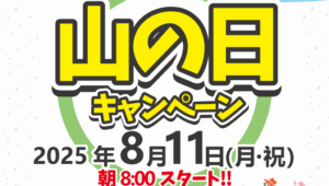 山の日キャンペーン 当日レシート提示で先着100名様に100円券プレゼント!
