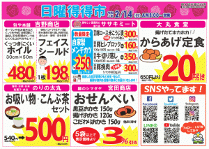 特売情報 ★★日曜得得市★★ 2/14(日) 8:00open♪ ※一部店舗営業です