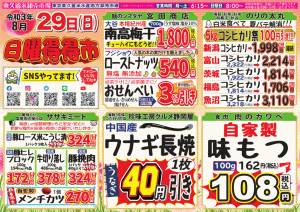 特売情報 ★★日曜得得市★★ 8/29(日) 8時OPEN♪ ※一部店舗営業