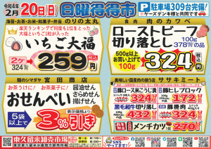 特売情報 ★★日曜得得市★★ 2/20 8時open♪ ※一部店舗営業
