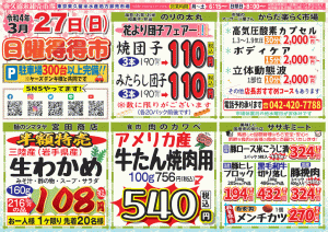 特売情報 ★★日曜得得市★★ 3/27(日) 8時open♪ ※一部店舗営業