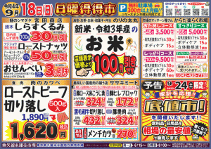 特売情報 ★★日曜得得市★★ 9/18(日) 朝8時open♪ ※一部店舗営業