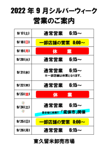 2022年9月シルバーウィークの営業のご案内