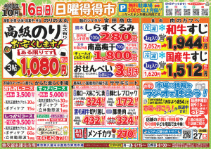 特売情報 ★★日曜得得市★★ 10/16(日) 朝8時open♪ ※一部店舗は休業となります