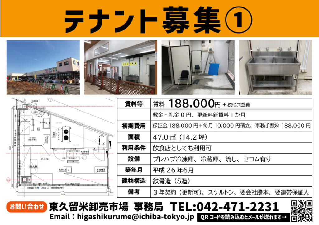 詳細は当市場 事務局(TEL:042-471-2231 Email:higashikurume@ichiba-tokyo.jp)までご連絡ください。