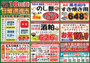 特売情報 ★★日曜得得市★★ 12/18(日) 朝8時open♪ ※一部店舗は休業となります