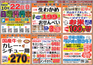 特売情報 ★★日曜得得市★★ 10/22(日) 朝8時open♪ ※一部店舗は休業となります
