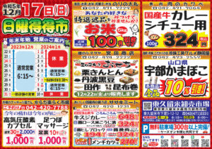 特売情報 ★★日曜得得市★★ 12/17(日) 朝8時open♪ ※一部店舗は休業となります