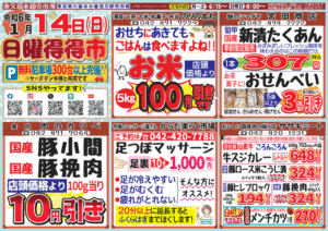 特売情報 ★★日曜得得市★★ 1/14(日)朝8時open♪ ※一部店舗は休業