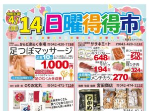 特売情報 ★★日曜得得市★★ 4/14(日) 朝8時open♪ ※一部店舗は休業となります