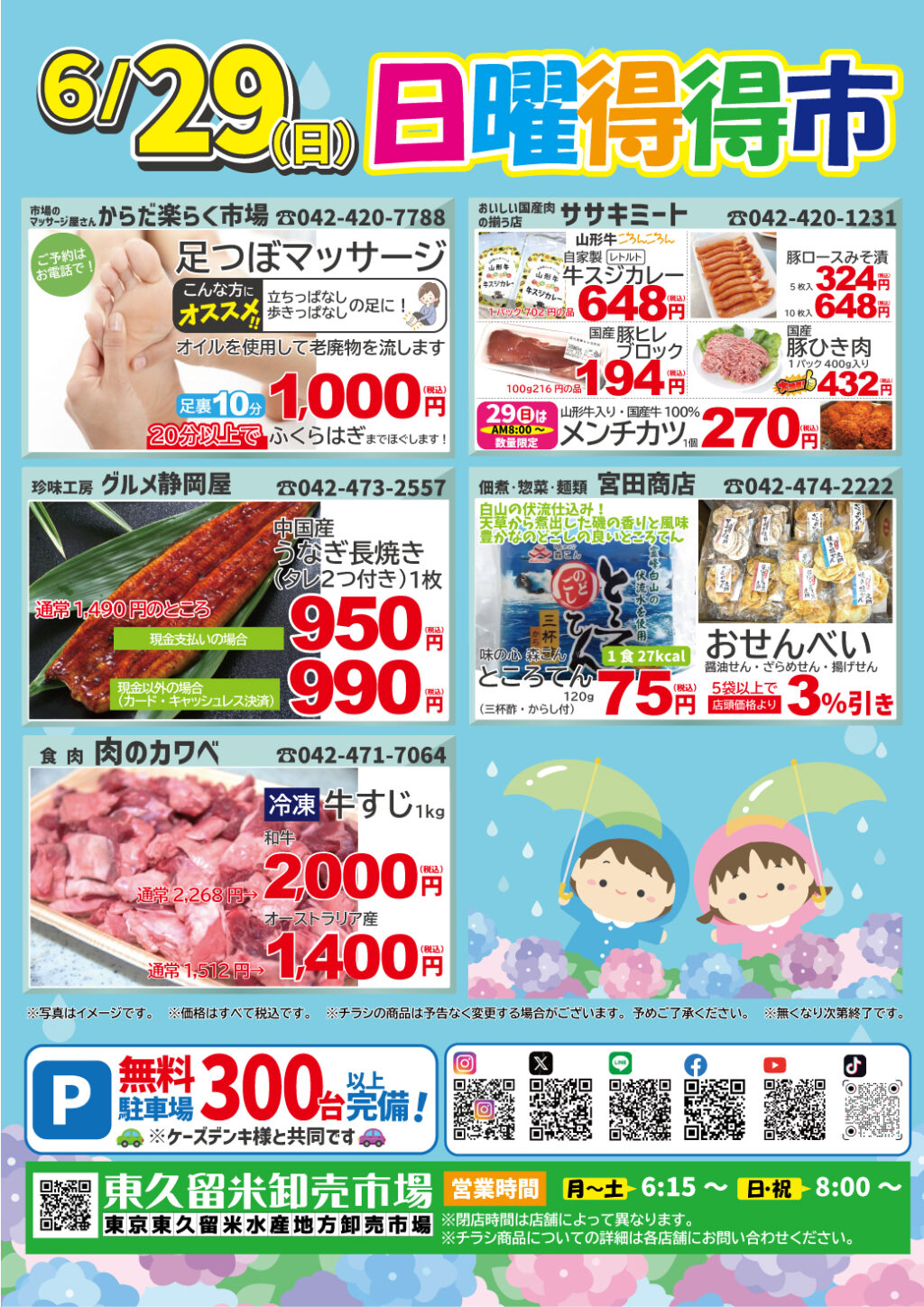 特売情報 ★★日曜得得市★★ 6/29(日) 朝8時open♪ ※一部店舗は休業となります 2025年6月24日 最終更新日時 : 2025年6月24日 tokutokuadmin ※写真はイメージです。 ※価格はすべて税込です。 ※内容は予告なく変更する場合がございますので予めご了承ください。 ※無くなり次第終了いたします。