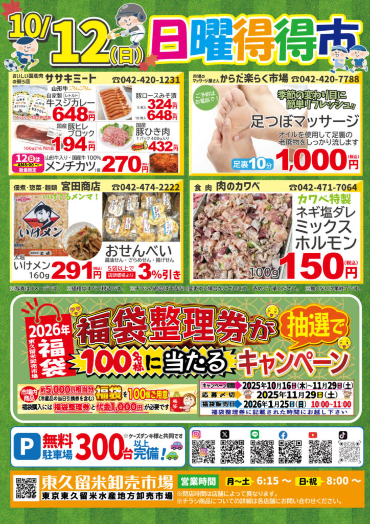 特売情報 ★★日曜得得市★★10/12(日) 朝8時open♪ ※一部店舗は休業となります 2025年10月7日 最終更新日時 : 2025年10月7日 tokutokuadmin ※写真はイメージです。※価格はすべて税込です。※内容は予告なく変更する場合がございますので予めご了承ください。※無くなり次第終了いたします。