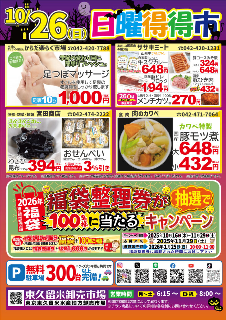 特売情報 ★★日曜得得市★★10/26(日) 朝8時open♪ ※一部店舗は休業となります 2025年10月21日 最終更新日時 : 2025年10月21日 tokutokuadmin ※写真はイメージです。※価格はすべて税込です。※内容は予告なく変更する場合がございますので予めご了承ください。※無くなり次第終了いたします。