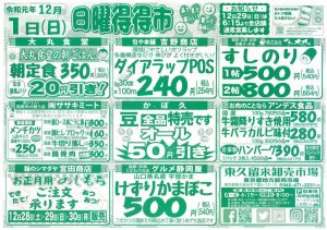 特売情報★★日曜得得市★★12/1(土) ※一部店舗の営業です