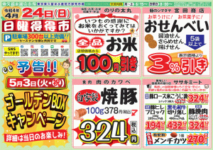 5/3(火・祝) ゴールデンBOXキャンペーン 大盛況にて終了! 2022年5月3日 最終更新日時 : 2022年5月7日 tokutokuadmin 5/3(火・祝)開催のこちらのイベントは、大盛況にて終了いたしました! ご来場いただいた皆様、本当にありがとうございました! 2022年5月3日(火・祝)はイベント開催いたします! 市場も朝6:15より通常営業いたします!(一部店舗は休業)