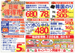 特売情報 ★★日曜得得市★★ 11/29(日) 8時open♪