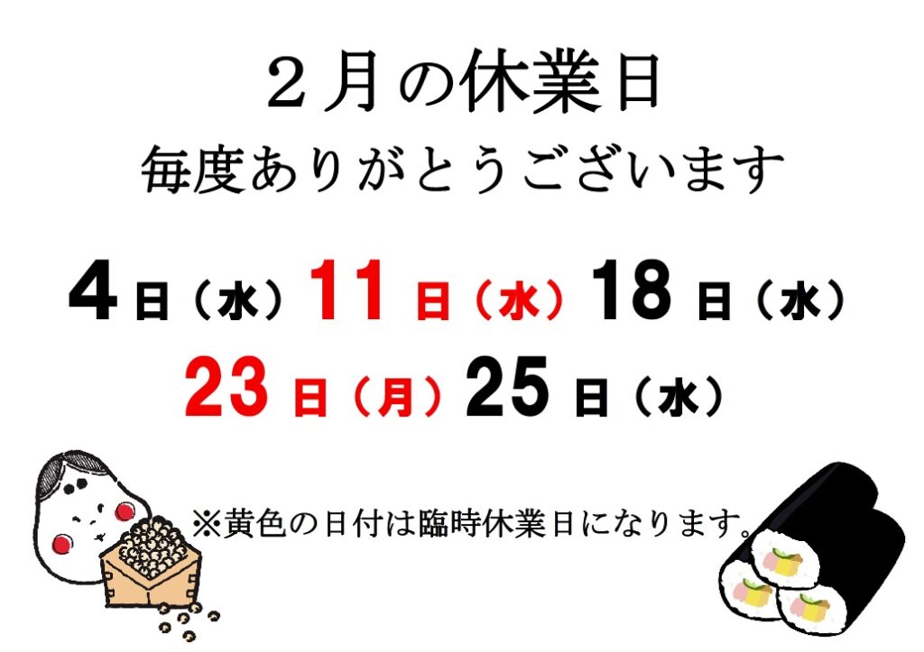 その他、休業日は以下にてご確認ください。